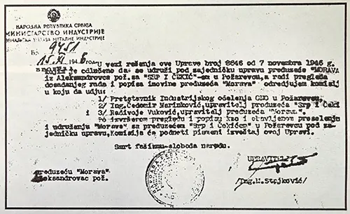 - 1946. Na temeljima nacionalizovane fabrike Milana Marića rađa se državno preduzeće „Srp i čekić“ u Požarevcu, okupljajući metalce iz obe nekadašnje fabrike da obnove zemlju.